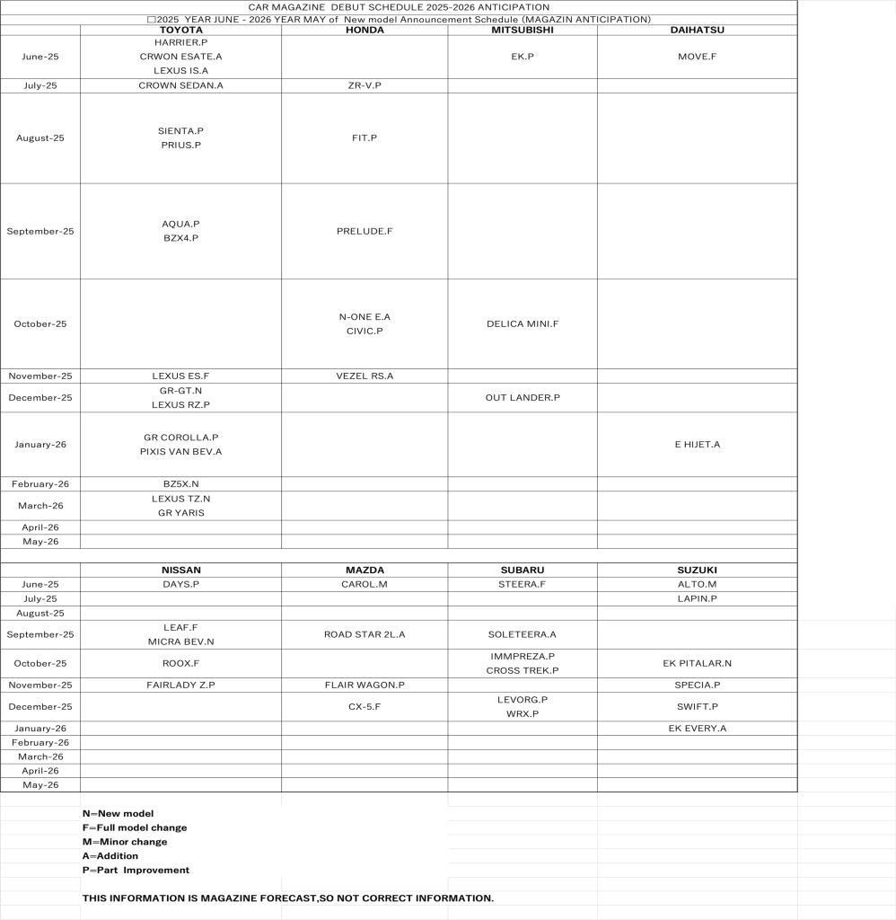 Car model Information 2025.06